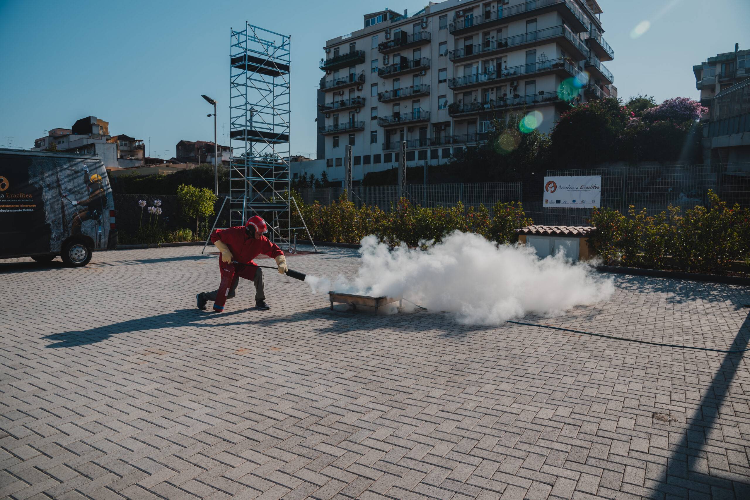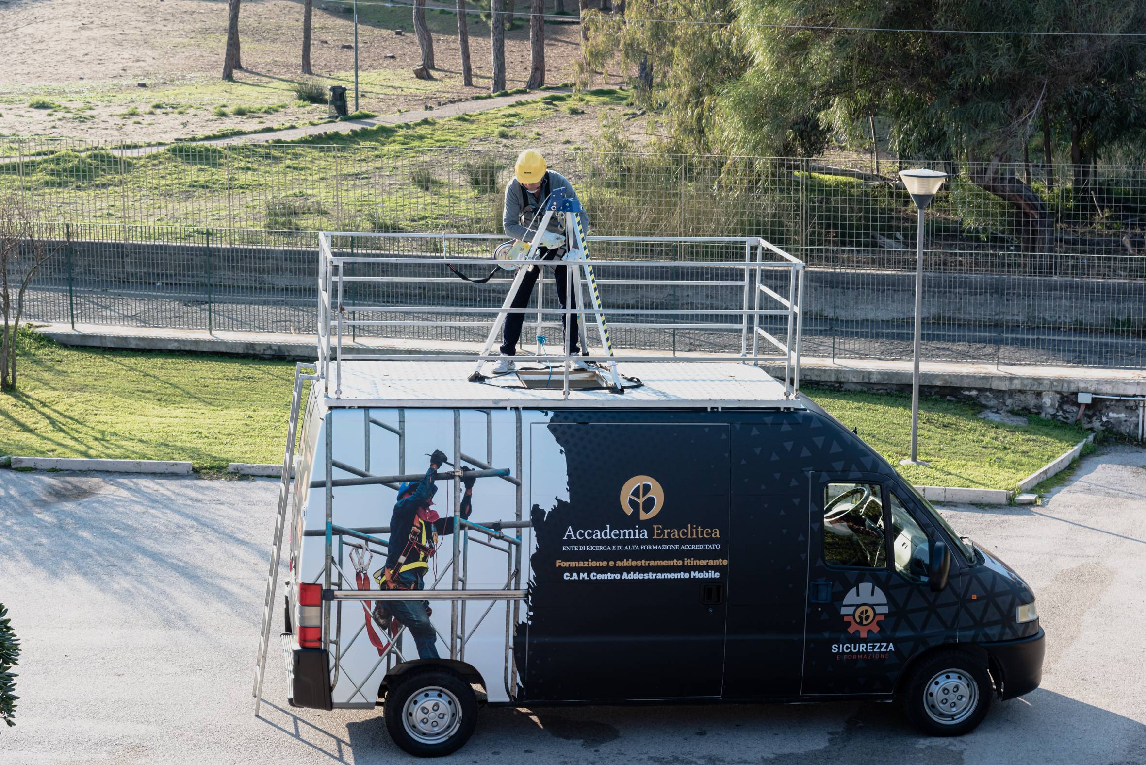 Progettato secondo i più alti standard tecnici e conformemente alle normative vigenti, il campo consente di ricreare situazioni operative reali: dai lavori in quota e su funi, all’utilizzo dei DPI di terza categoria, dalle esercitazioni in spazi confinati fino alle prove con trabattelli e attrezzature per l’accesso e il posizionamento, passando per la formazione antincendio, grazie a un’area dedicata dotata di simulatori, idranti e dispositivi certificati che permettono di esercitarsi nella gestione delle emergenze.